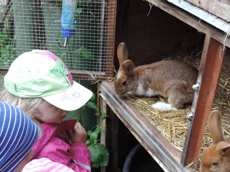 Dort wurden die Ziegen, Enten, Hasen und Rinder besucht. Dann durften die Kinder den Traktor erkunden und im Kräutergarten Schnittlauch und Petersilie ernten. Zum Abschluss gab es selbst gemachten Kräuterquark mit frischem Brot.