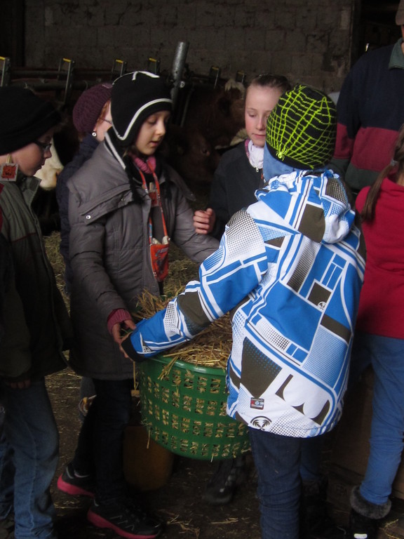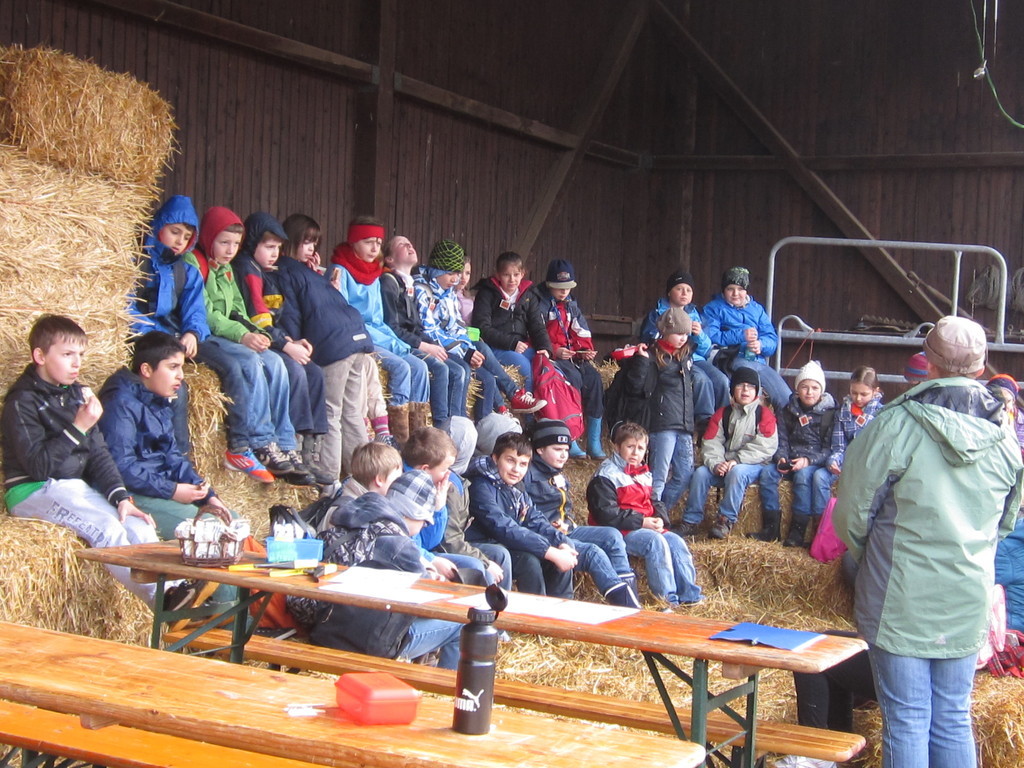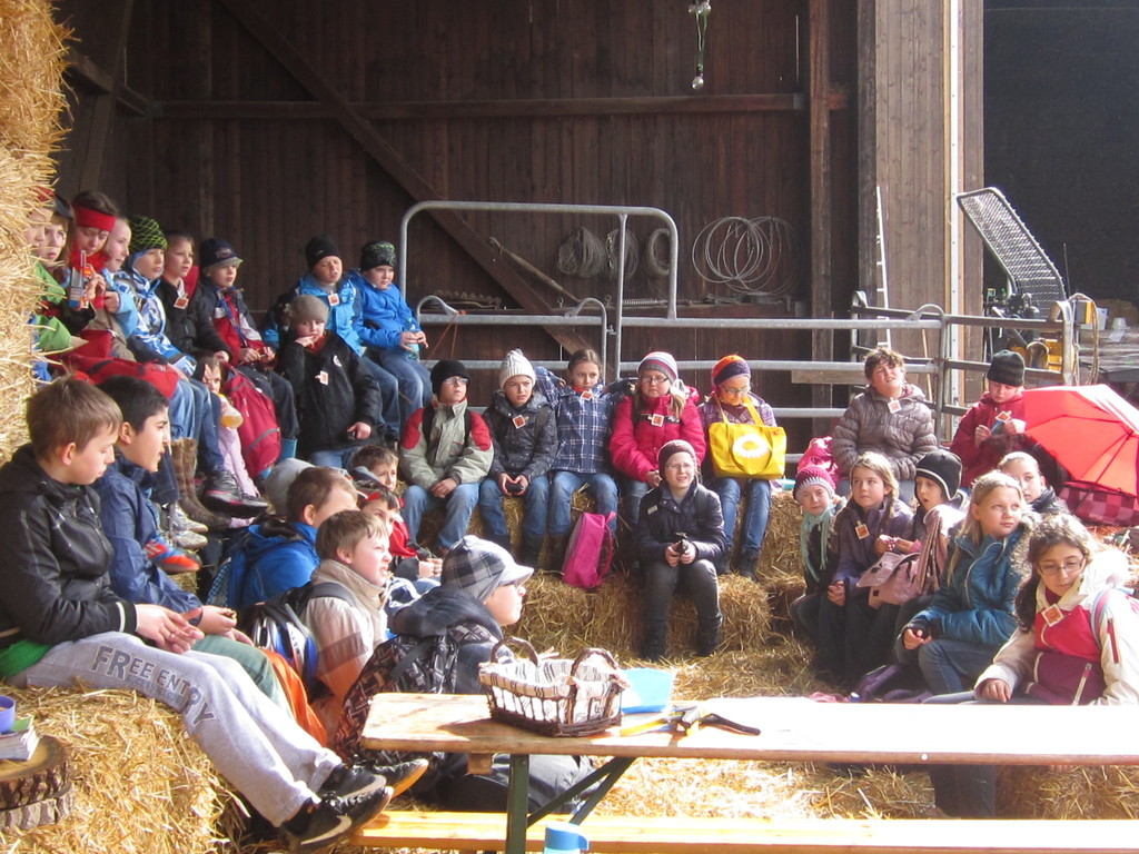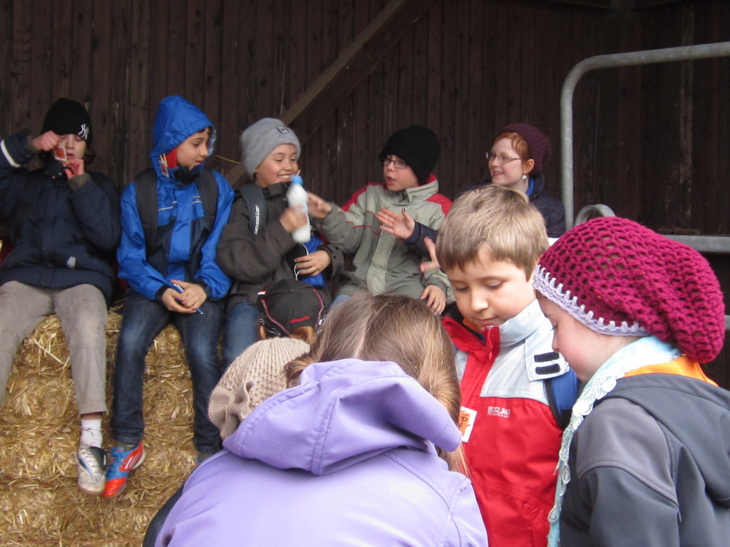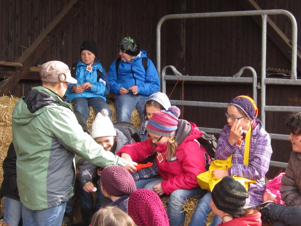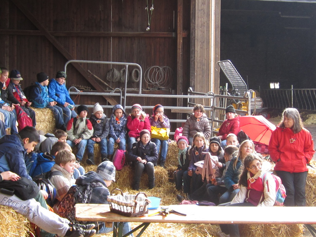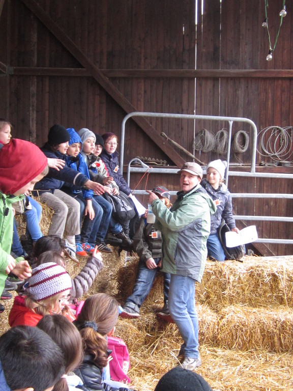 Den Bauernhof erleben mit all seinen Arbeitsabläufen stand bei diesem Projekttag im Vordergrund. So reichte die Themenvielfalt von Getreideanbau über Weidehaltung von Rindern und deren Fütterung, die Kennzeichnung der Rinder sowie die Vielfalt der Milcharten aber auch wurde der Anbau der Sonderkultur Kürbis aufgezeigt.
