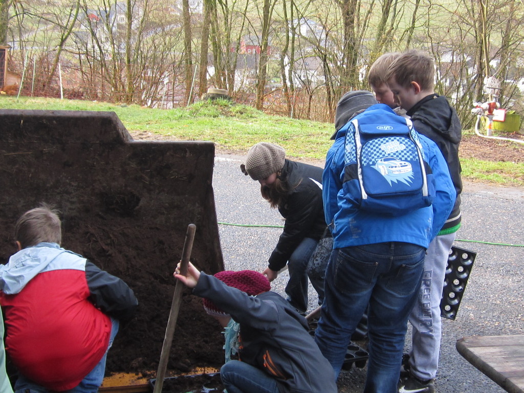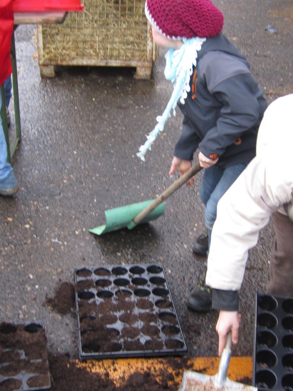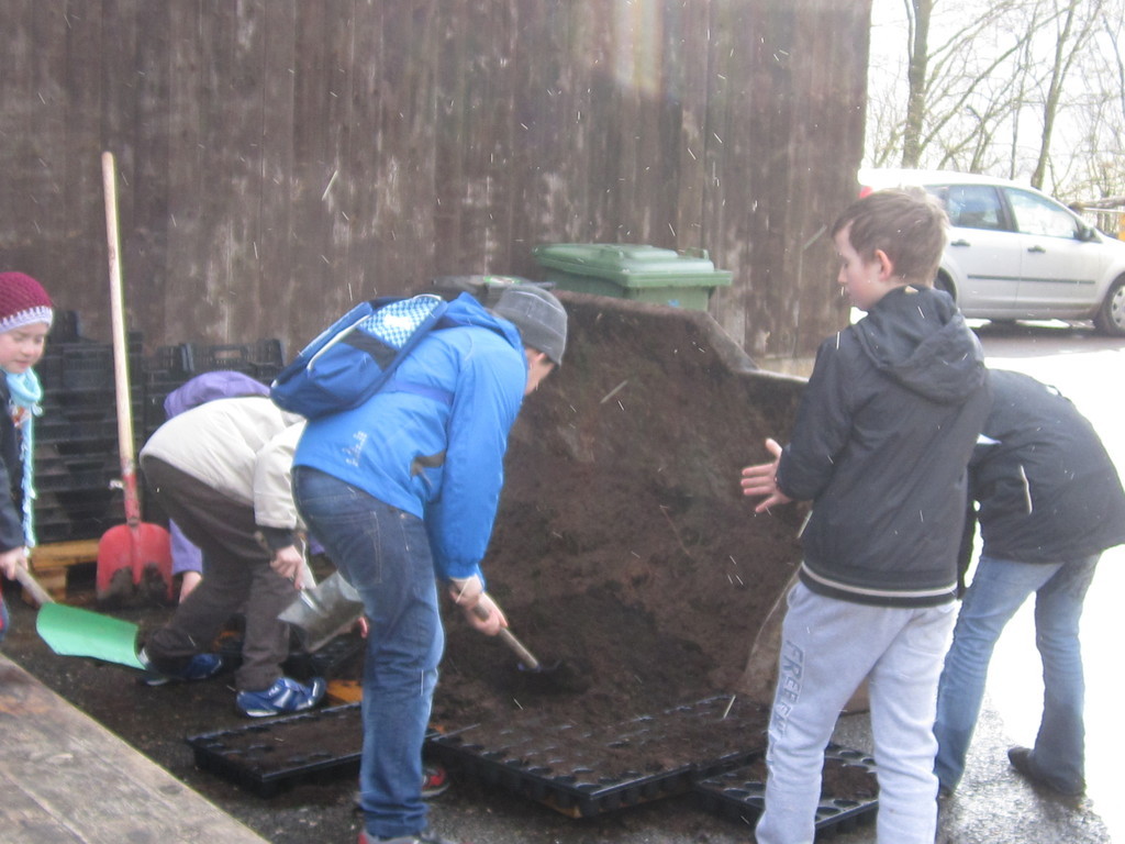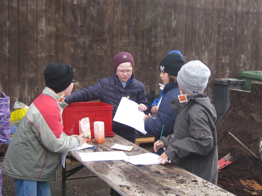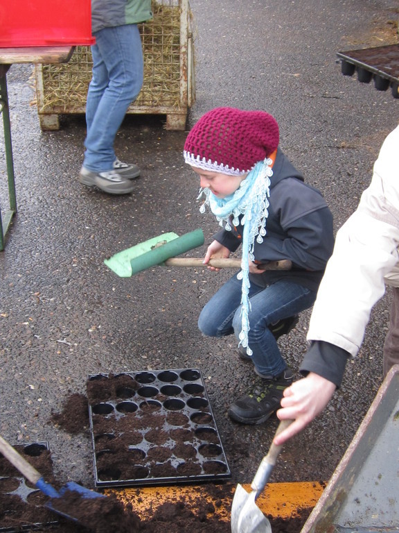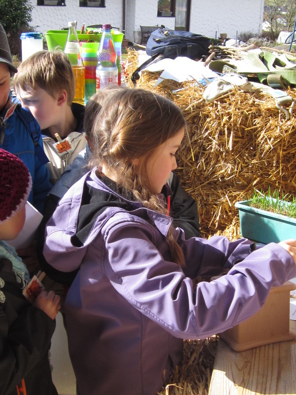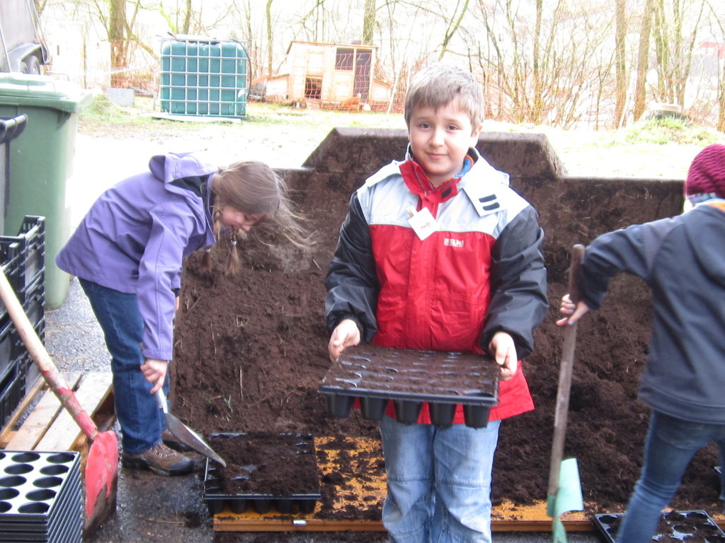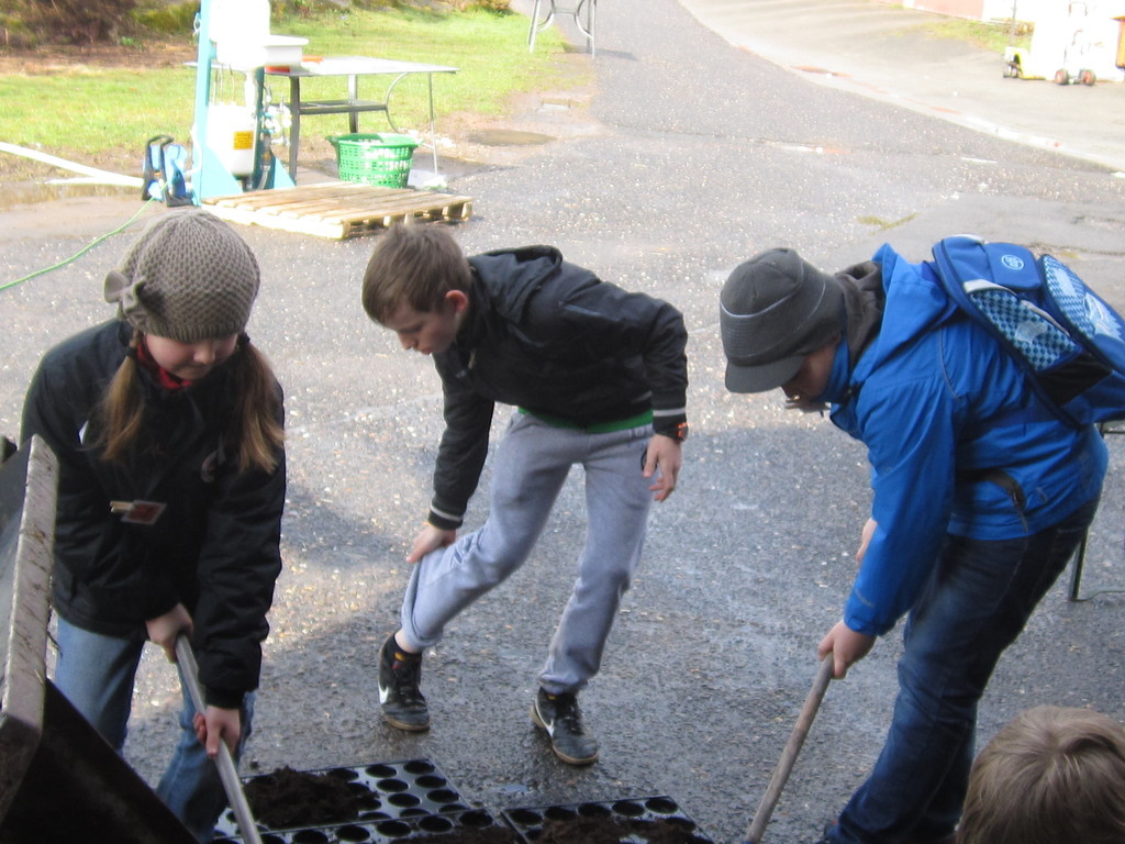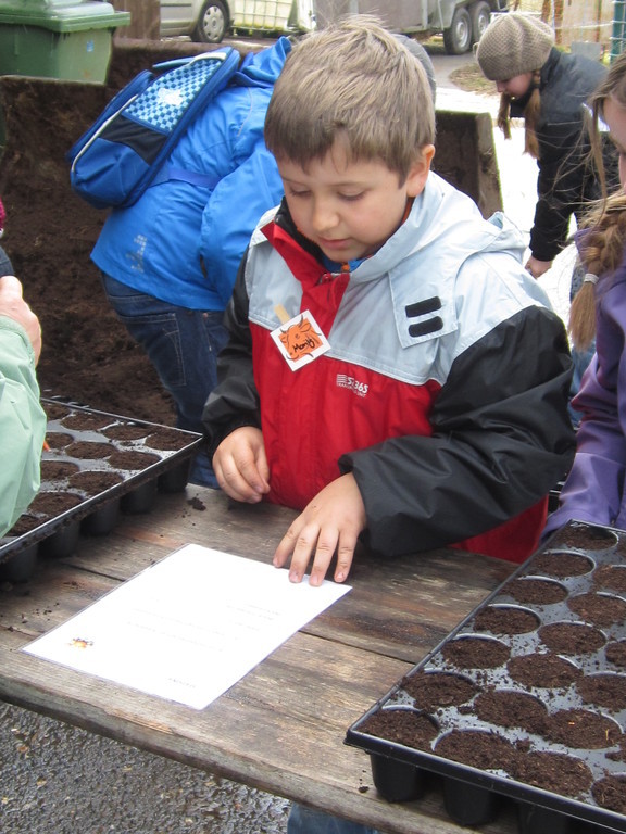 Im Lernzirkel konnten die Schüler ihr zuvor gewonnenes Wissen beim Flur-Rundgang in die Praxis umsetzen und aktiv mitarbeiten beim Auslegen von Kürbissamen in Saatplatten.