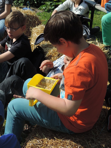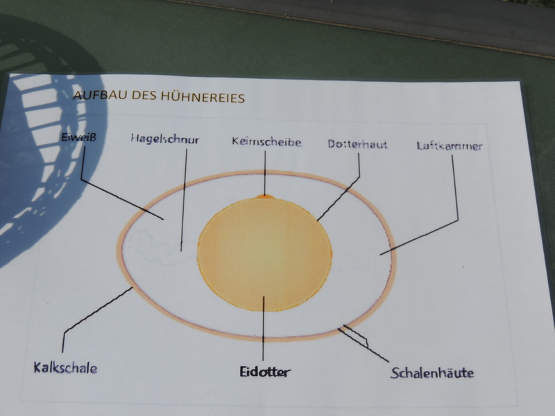 Die Themeninhalte von Herkunft des Huhnes, Haltung, Fütterung, über die Kennzeichnung des Eies sowie die Entstehung eines Kükens erweckten besonderes Interesse und wurde den Schülern verständlich erklärt.