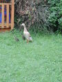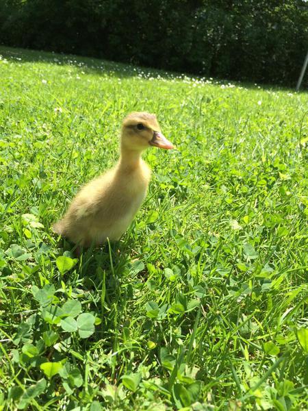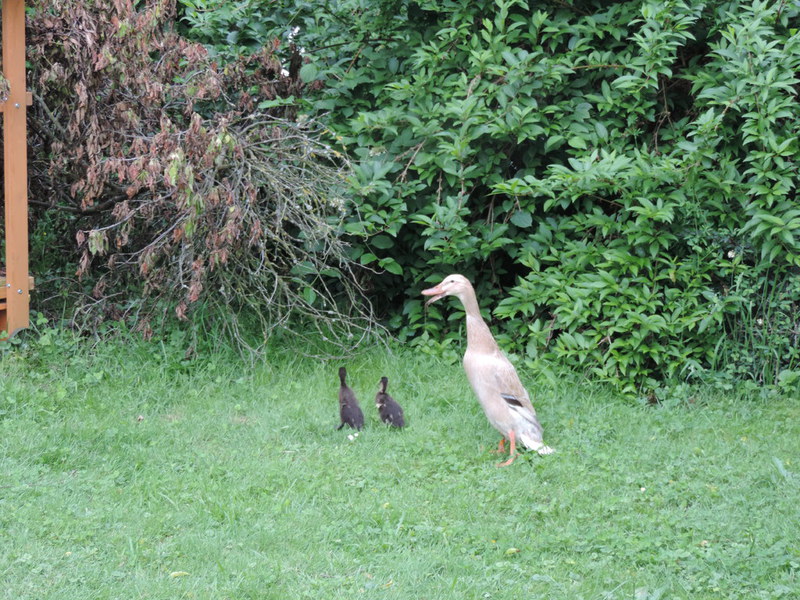 Das letzte Geschwisterchen der 3 kleinen Laufentenbabys schaffte es mit Hilfe von Bauer Frank auch aus der harten Schale des Eies. Nach ein paar Führungen quer über den Hof dürfen wir jetzt auch schon ohne unsere Mama auf Entdeckungskurs gehen. Plantschen im Wasser, Quarken was das Zeug hält und ganz schnell auf der Wiese flitzen, das ist vielleicht ein Spaß.